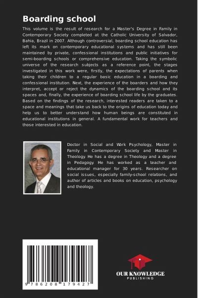 This volume is the result of research for a Master's Degree in Family in Contemporary Society completed at the Catholic University of Salvador, Bahia, Brazil in 2007. Although controversial, boarding school education has left its mark on contemporary educational systems and has still been maintained by private, confessional institutions and public initiatives for semi-boarding schools or comprehensive education. Taking the symbolic universe of the research subjects as a reference point, the stages investigated in this work were, firstly, the expectations of parents when taking their children to a regular basic education in a boarding and confessional institution. Next, the experience of the boarders and how they interpret, accept or reject the dynamics of the boarding school and its spaces and, finally, the experience of boarding school life by the graduates. Based on the findings of the research, interested readers are taken to a space and meanings that take us back to the origins of education today and help us to better understand how human beings are constituted in educational institutions in general. A fundamental work for teachers and those interested in education.