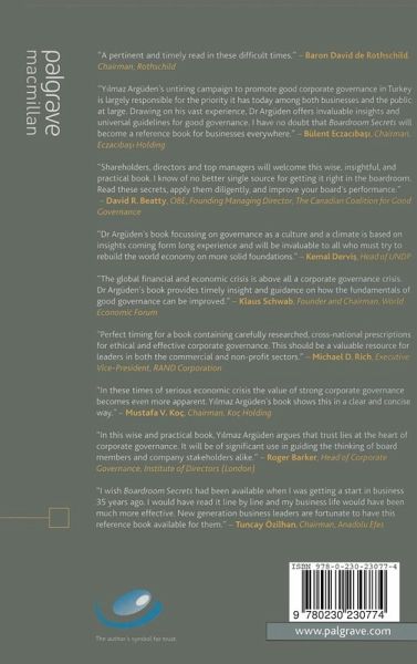 'Y?lmaz Argüden's untiring campaign to promote good corporate governance in Turkey is largely responsible for the priority it has today among both businesses and the public at large. Drawing on his vast experience, Dr. Argüden offers invaluable insights and universal guidelines for a wide range of management decisions that impact corporate governance. I have no doubt that 'Boardroom Secrets' will become a reference book for businesses everywhere as they seek to rebuild the trust of their stakeholders in the years ahead.' - Bülent Eczac?ba??, Chairman, Eczac?ba?? Holding