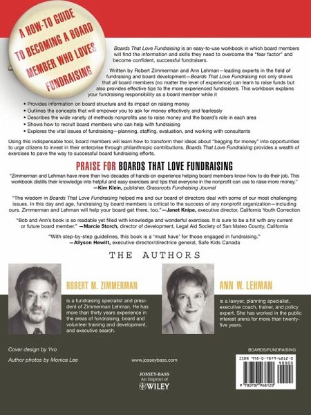 "The book is a user-friendly soft-cover workbook providinginformation on how to more effectively raise money." (ContraCosta Times, 4/2/2004)"Zimmerman and Lehman have more than two decades of hands-onexperience helping board members know how to do their job. Thisworkbook distills their knowledge into helpful and easy exercisesand tips that everyone in the nonprofit can use to raise moremoney."