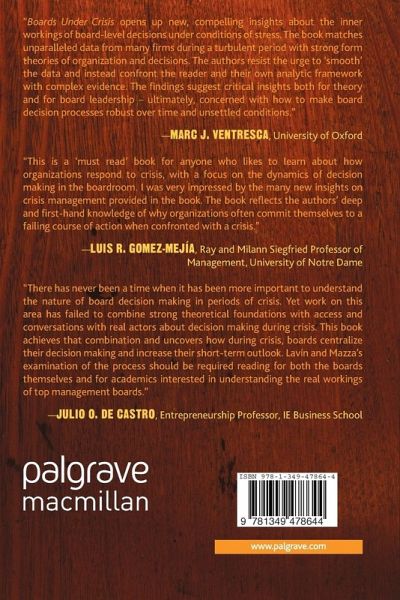 An innovative, research-based review of how boards make decisions during crises - designed to offer insight and accessible theories for invested senior management facing crises situations. This book gathers recent and historical research on boardroom decision making from the field and business literature to review crises, TMT and decision making.