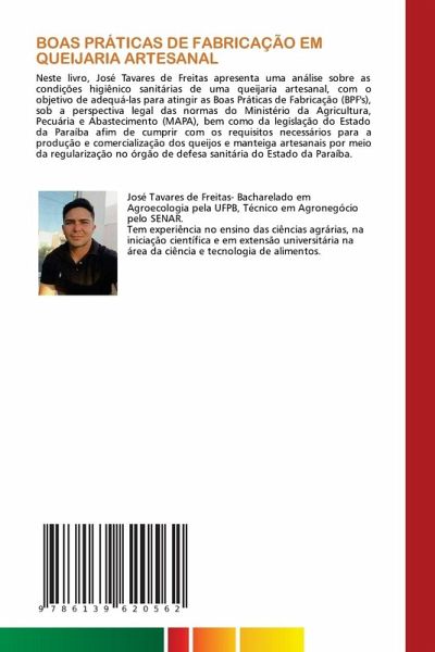 Neste livro, José Tavares de Freitas apresenta uma análise sobre as condições higiênico sanitárias de uma queijaria artesanal, com o objetivo de adequá-las para atingir as Boas Práticas de Fabricação (BPF's), sob a perspectiva legal das normas do Ministério da Agricultura, Pecuária e Abastecimento (MAPA), bem como da legislação do Estado da Paraíba afim de cumprir com os requisitos necessários para a produção e comercialização dos queijos e manteiga artesanais por meio da regularização no órgão de defesa sanitária do Estado da Paraíba.