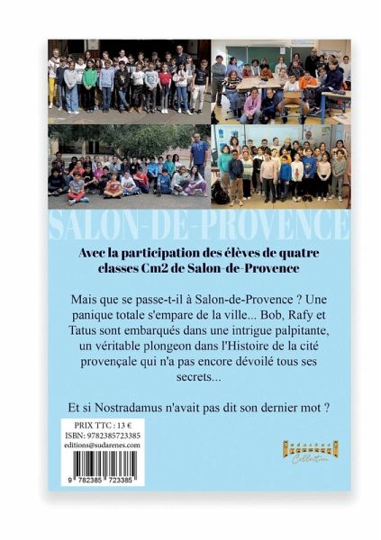 Mais que se passe-t-il à Salon-de-Provence ? Une panique totale s'empare de la ville... Bob, Rafy et Tatus sont embarqués dans une intrigue palpitante, un véritable plongeon dans l'Histoire de la cité provençale qui n'a pas encore dévoilé tous ses secrets... Et si Nostradamus n'avait pas dit son dernier mot ? Avec la participation des élèves de quatre classes Cm2 de Salon-de-Provence