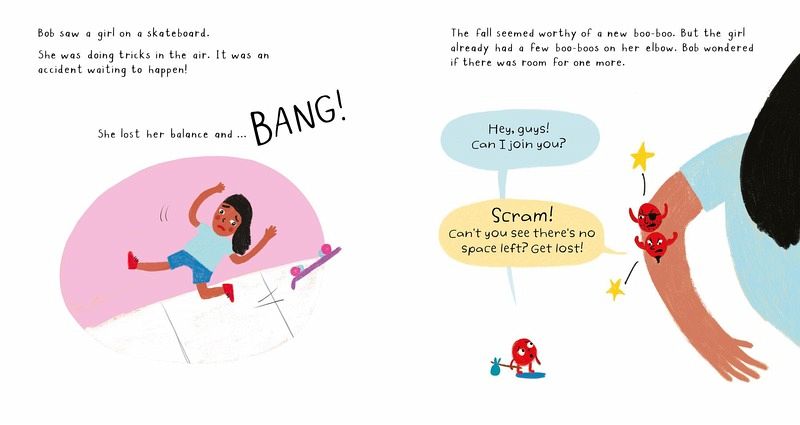 A must-have for every kindergarten. A charming and funny story with an unexpected main character – a boo-boo! An adorable boo-boo named Bob is looking for a cozy place to settle down when he spots a little boy who’s fallen off his bike and hurt himself. ”Can I be your boo-boo?“ Bob asks the boy. When the boy agrees, Bob eagerly jumps up onto his scraped knee. It’s a perfect spot, and Bob and the boy spend many glorious days doing everything together. That is, until the boy starts to realize what Bob has known all along. Boo-boos and little boys can’t stay together forever. Or can they? This fun and original story is the perfect remedy for any child who’s got a boo-boo of their own, and a great choice for helping children navigate their emotions after getting hurt.