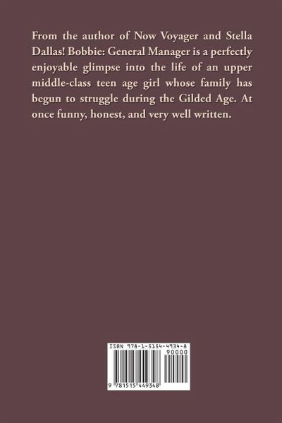 From the author of Now Voyager and Stella Dallas! Bobbie: General Manager is a perfectly enjoyable glimpse into the life of an upper middle-class teen age girl whose family has begun to struggle during the Gilded Age. At once funny, honest, and very well written.