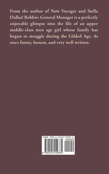 From the author of Now Voyager and Stella Dallas! Bobbie: General Manager is a perfectly enjoyable glimpse into the life of an upper middle-class teen age girl whose family has begun to struggle during the Gilded Age. At once funny, honest, and very well written.