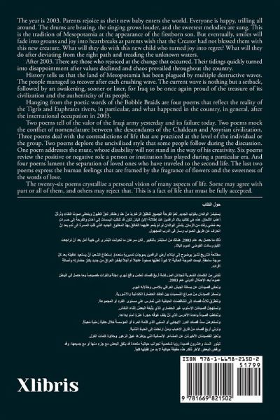 The year is 2003. Parents rejoice as their new baby enters the world. Everyone is happy, trilling all around. The drums are beating, the singing grows louder, and the sweetest melodies are sung. This is the tradition of Mesopotamia at the appearance of the firstborn son. But eventually, smiles will fade into groans and joy into heartbreaks as parents wish that the Creator had not blessed them with this new creature. What will they do with this new child who turned joy into regret? What will they do after deviating from the right path and treading the unknown waters. Feelings of remorse among human beings could be reflected on various aspects of life. A person may yearn for a job, then regret it after a short while, and cling to move on to another one. Another may feel frustrated after emigrating to a second country and wish to return to his motherland. After 2003. There are those who rejoiced at the change that occurred. Their tidings quickly turned into disappointment after values declined and chaos prevailed throughout the country. History tells us that the land of Mesopotamia has been plagued by multiple destructive waves. The people managed to recover after each crushing wave. The current wave is nothing but a setback, followed by an awakening, sooner or later, for Iraq to be once again proud of the treasure of its civilization and the authenticity of its people. Hanging from the poetic words of the Bobble Braids are four poems that reflect the reality of the Tigris and Euphrates rivers, in particular, and what happened in the country, in general, after the international occupation in 2003. Hanging from the poetic words of the Bobble Braids are four poems that reflect the reality of the Tigris and Euphrates rivers, in particular, and what happened in the country, in general, after the international occupation in 2003. Two poems tell of the valor of the Iraqi army yesterday and its failure today. Two poems mock the conflict of nomenclature between the descendants of the Chaldean and Assyrian civilization. Three poems deal with the contradictions of life that are practiced at the level of the individual or the group. Two poems deplore the uncivilized style that some people follow during the discussion. One poem addresses the mute, whose disability will not stand in the way of his creativity. Six poems review the positive or negative role a person or institution has played during a particular era. And four poems lament the separation of loved ones who have traveled to the second life. The last two poems express the human feelings that are framed by the fragrance of flowers and the sweetness of the words of love. The twenty-six poems crystallize a personal vision of many aspects of life. Some may agree with part or all of them, and others may reject that. This is a fact of life that must be fully accepted.