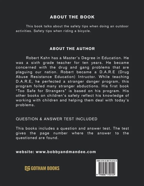 This book talks about the safety tips when doing outdoor activities. Safety tips when riding a bicycle. About The Author: Retired Deputy Bob Kahn has a Master's Degree in Education. He was a sixth grade teacher for ten years when he became concerned with the problems that are plaguing our youth. Bob became a D.A.R.E. Instructor and as an instructor was faced with youth suicide. Bob researched the subject, and with a school counselor and a therapist.