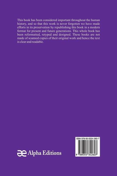 This book has been considered important throughout the human history, and so that this work is never forgotten we have made efforts in its preservation by republishing this book in a modern format for present and future generations. This whole book has been reformatted, retyped and designed. These books are not made of scanned copies and hence the text is clear and readable.