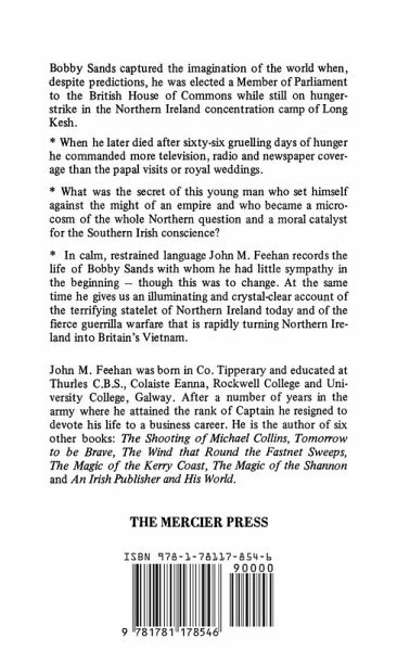 Bobby Sands captured the imagination of the world when, despite predictions, he was elected a Member of Parliament to the British House of Commons while still on hunger-strike in the Northern Ireland concentration camp of Long Kesh. When he later died after sixty-six gruelling days of hunger he commanded more television, radio and newspaper coverage than the papal visits or royal weddings. What was the secret of this young man who set himself against the might of an empire and who became a microcosm of the whole Northern question and a moral catalyst for the Southern Irish conscience? In calm restrained language John M. Feehan records the life of Bobby Sands with whom he had little sympathy in the beginning - though this was to change. At the same time, he gives us an illumination and crystal-clear account of the terrifying statelet of Northern Ireland today and of the fierce guerilla warfare that is rapidly turning Northern Ireland into Britain's Vietnam.