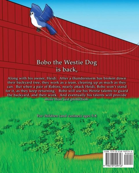 A West highland terrier names Bobo, and his owner, Heidi, attend to backyard work, after a thunderstorm breaks down their tree. While cleaning, they and distracted by birdies getting in their way.