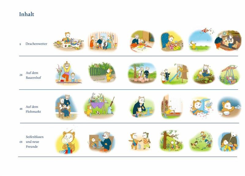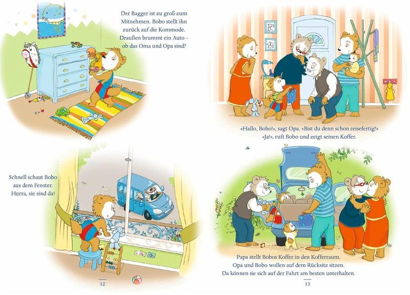 Bobo Siebenschläfer darf ein paar Tage bei seinen Großeltern verbringen! Und Oma und Opa haben sich ein paar wunderbare Sachen überlegt, die sie mit Bobo unternehmen wollen: einen Drachen bauen und steigen lassen, zum Beispiel. Einen Biobauernhof besuchen, wo man Kühe und Schweine streicheln kann. Auf den Flohmarkt gehen und etwas ganz Besonderes kaufen. Äpfel im Garten pflücken und Apfelkompott kochen. Bobo genießt die Zeit bei Oma und Opa in vollen Zügen. Und schläft jeden Abend zufrieden ein.