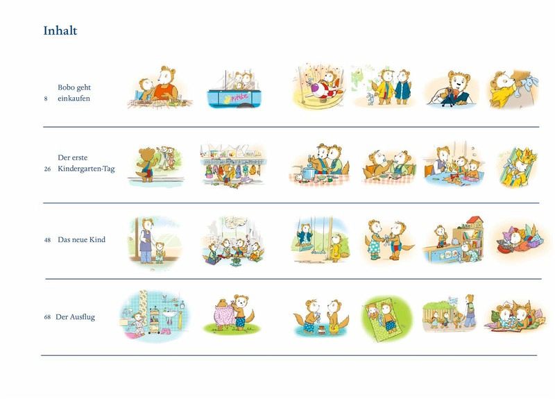Endlich ist es so weit: Bobo kommt in den Kindergarten! Familie Siebenschläfer kauft gemeinsam alles ein, was Bobo dafür braucht. Der erste Tag im Kindergarten ist ganz schön aufregend, aber Bobo lebt sich schnell ein. Zum Glück ist ja sein kleiner Hase immer mit dabei. Bald hat Bobo eine neue Freundin gefunden. Und schließlich machen alle Siebenschläferkinder sogar einen richtigen Ausflug ... wie schön es im Kindergarten ist!
