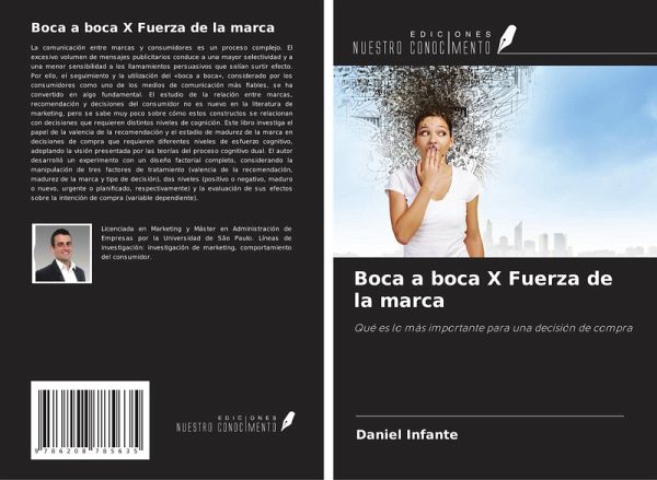La comunicación entre marcas y consumidores es un proceso complejo. El excesivo volumen de mensajes publicitarios conduce a una mayor selectividad y a una menor sensibilidad a los llamamientos persuasivos que solían surtir efecto. Por ello, el seguimiento y la utilización del 'boca a boca', considerado por los consumidores como uno de los medios de comunicación más fiables, se ha convertido en algo fundamental. El estudio de la relación entre marcas, recomendación y decisiones del consumidor no es nuevo en la literatura de marketing, pero se sabe muy poco sobre cómo estos constructos se relacionan con decisiones que requieren distintos niveles de cognición. Este libro investiga el papel de la valencia de la recomendación y el estadio de madurez de la marca en decisiones de compra que requieren diferentes niveles de esfuerzo cognitivo, adoptando la visión presentada por las teorías del proceso cognitivo dual. El autor desarrolló un experimento con un diseño factorial completo, considerando la manipulación de tres factores de tratamiento (valencia de la recomendación, madurez de la marca y tipo de decisión), dos niveles (positivo o negativo, maduro o nuevo, urgente o planificado, respectivamente) y la evaluación de sus efectos sobre la intención de compra (variable dependiente).