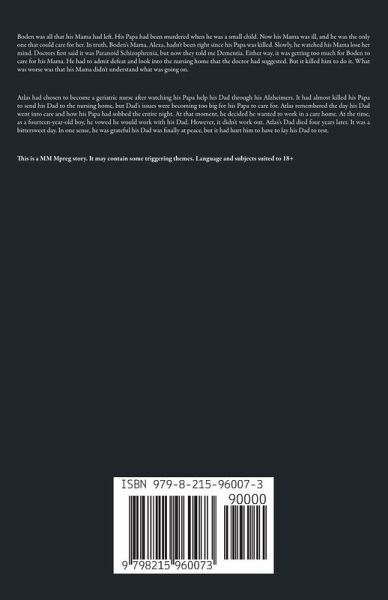 Boden was all that his Mama had left. His Papa had been murdered when he was a small child. Now his Mama was ill, and he was the only one that could care for her. In truth, Boden's Mama, Alexa, hadn't been right since his Papa was killed. Slowly, he watched his Mama lose her mind. Doctors first said it was Paranoid Schizophrenia, but now they told me Dementia. Either way, it was getting too much for Boden to care for his Mama. He had to admit defeat and look into the nursing home that the doctor had suggested. But it killed him to do it. What was worse was that his Mama didn't understand what was going on. Atlas had chosen to become a geriatric nurse after watching his Papa help his Dad through his Alzheimers. It had almost killed his Papa to send his Dad to the nursing home, but Dad's issues were becoming too big for his Papa to care for. Atlas remembered the day his Dad went into care and how his Papa had sobbed the entire night. At that moment, he decided he wanted to work in a care home. At the time, as a fourteen-year-old boy, he vowed he would work with his Dad. However, it didn't work out. Atlas's Dad died four years later. It was a bittersweet day. In one sense, he was grateful his Dad was finally at peace, but it had hurt him to have to lay his Dad to rest. This is a MM Mpreg story. It may contain some triggering themes. Language and subjects suited to 18+