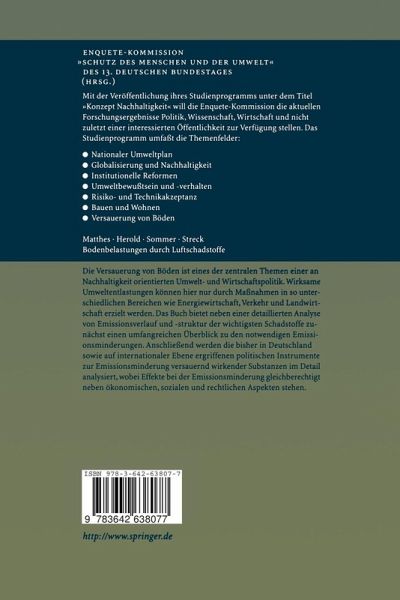 Die Versauerung von Böden ist eines der zentralen Themen einer an Nachhaltigkeit orientierten Umwelt- und Wirtschaftspolitik. Wirksame Umweltentlastungen können hier nur durch Maßnahmen in so unterschiedlichen Bereichen wie Energiewirtschaft, Verkehr und Landwirtschaft erzielt werden. Das Buch bietet neben einer detaillierten Analyse von Emissionsverlauf und -struktur der wichtigsten Schadstoffe zunächst einen umfangreichen Überblick zu den notwendigen Emissionsminderungen. Anschließend werden die bisher in Deutschland sowie auf internationaler Ebene ergriffenen politischen Instrumente zur Emissionsminderung versauernd wirkender Substanzen im Detail analysiert, wobei Effekte bei der Emissionsminderung gleichberechtigt neben ökonomischen, sozialen und rechtlichen Aspekten stehen.