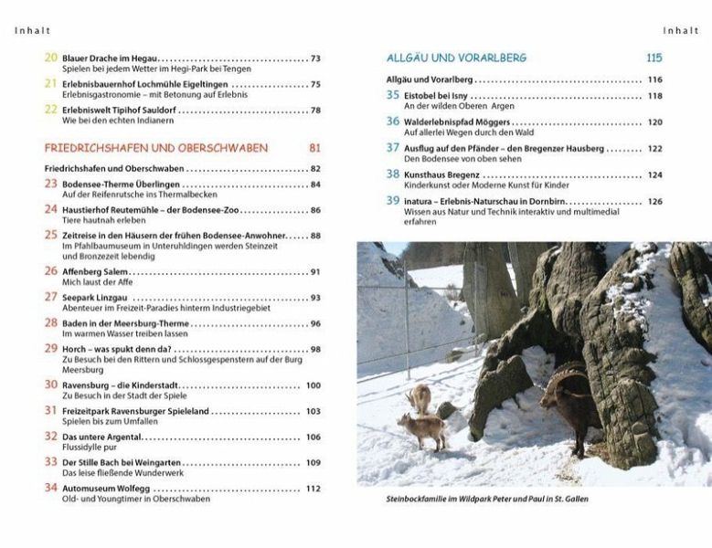 Im Ergebnis gefällt uns das Buch wirklich gut. Auch gerade weil sich das Buch nicht an den vielen Hot-Spots orientiert und viele Vorschläge für eher unbekannte Orte, man könnte schon sagen Geheimtipps, bereit hält. Ein paar Klassiker wie Affenberg Salem oder Sea Life Konstanz sind natürlich trotzdem dabei.
