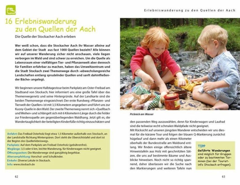 Hinzu kommt das Kapitel "Überregionaler Freizeitspass" mit einer Vielzahl an Tipps für (kleine) Badeseen, Schiffs- und Bootsfahrten, Aussichtstürmen und Veranstaltungen, welche für Kinder geeignet sind.