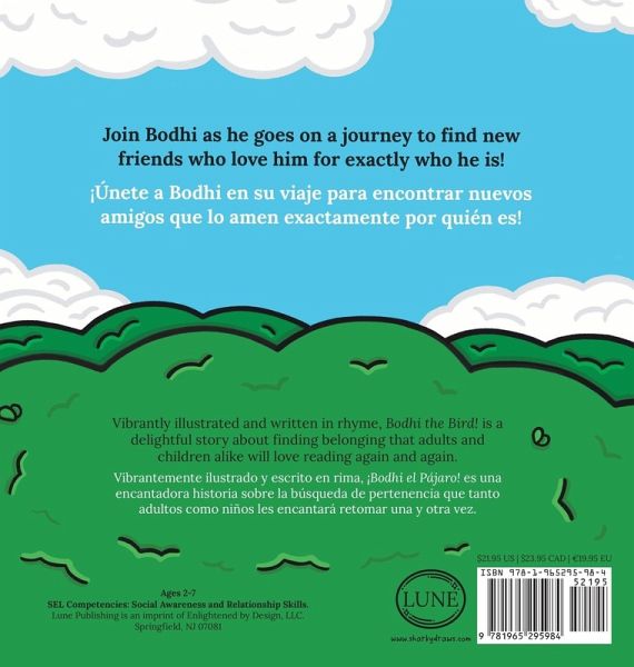 Vibrantly illustrated, written in rhyme, and created with Social-Emotional Learning (SEL) in mind. Bodhi the Bird is on a journey to find a sense of belonging with birds of all kinds! Line-by-line bilingual Spanish/English text for ESL use.