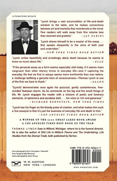 Thomas Lynch, poet, funeral director, and author of the highly praised The Undertaking, winner of an American Book Award and finalist for the National Book Award, continues to examine the relations between the "literary and mortuary arts."