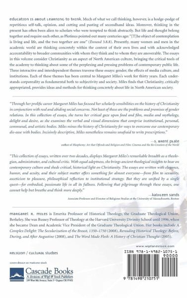 Education is about learning to think. Much of what we call thinking, however, is a hodge-podge of repetitious self-talk, opinion, and cutting and pasting of second-hand ideas. Moreover, thinking in the present has often been alien to scholars who were tempted to think abstractly. But life and thought belong together and require each other, as Plotinus pointed out many centuries ago: ""[T]he object of contemplation is living and life, and the two together are one"" (Ennead 3.8.8). Presently, many women and men in the academic world are thinking concretely within the context of their own lives and with acknowledged accountability to broader communities with whom they think and to whom they are answerable. The essays in this volume consider Christianity as an aspect of North American culture, bringing the critical tools of the academy to thinking about some of the perplexing and pressing problems of contemporary public life. Three interactive and interdependent themes traverse these essays: gender, the effects of media culture, and institutions. Each of these themes has been central to Margaret Miles's work for thirty years. Each understands corporeality as fundamental both to subjectivity and society. Miles finds that Christianity, critically appropriated, provides ideas and methods for thinking concretely about life in North American society.