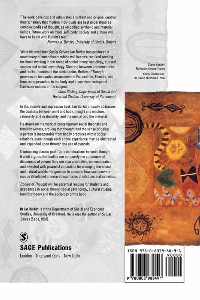 `The work develops and articulates a brilliant and original central thesis; namely that modern individuals are best understood as complex bodies of thought, as embodied symbolic and material beings. Future work on mind, self, body, society and culture will have to begin with Burkitt's text' - Norman K. Denzin, University of Illinois