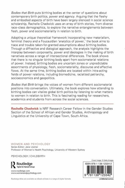 Bodies that Birth puts birthing bodies at the centre of questions about contemporary birth politics, power, and agency. Arguing that the fleshy and embodied aspects of birth have been largely silenced in social science scholarship, Rachelle Chadwick uses an array of birth stories, from diverse race-class demographics, to explore the narrative entanglements between flesh, power, and sociomateriality in relation to birth.