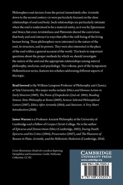 The relationship of soul to body was one of the earliest and most persistent questions in ancient thought. The essays cover connected issues from the period immediately after Aristotle to the second century CE. Doctors from Herophilus to Galen are covered, as are the Peripatetic, Epicurean, Stoic and Platonist traditions.