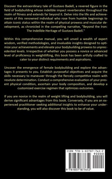 Discover the extraordinary tale of Gustavo Badell, a revered figure in the field of bodybuilding whose indelible impact reverberates throughout the realm of fitness and extends far beyond it. Delve into the life and achievements of this renowned individual who rose from humble beginnings to attain iconic status within the realm of physical prowess and muscular development, as chronicled in the compelling narrative, "Beyond the Iron: The Indelible Heritage of Gustavo Badell." Within this comprehensive manual, you will unveil a wealth of expert wisdom, verified methodologies, and invaluable insights designed to optimize your achievements and elevate your bodybuilding prowess to unprecedented levels. Irrespective of whether you possess a novice or advanced level of proficiency in weightlifting, this book has been artfully crafted to cater to your distinct requirements and aspirations. Uncover the emergence of female bodybuilding and explore the advantages it presents to you. Establish purposeful objectives and acquire the skills necessary to maneuver through the fiercely competitive realm with resolute determination. Conduct a comprehensive evaluation of your present physical condition, ascertain your body composition, and develop a customized exercise regimen that optimizes outcomes. If you are novice in the realm of weight lifting and bodybuilding, you will derive significant advantages from this book. Conversely, if you are an experienced practitioner seeking additional insights to enhance your understanding, you will also discover this book to be of value.