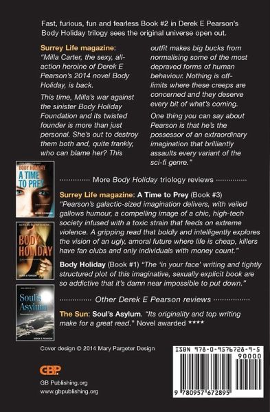 TV Presenter JULIETTE FOSTER: "Pearson possesses an extraordinary imagination that brilliantly assaults every variant of the sci-fi genre. His writing is vivid, urban and unflinching in its descriptions, taking the reader through Saturn's rings, outer-world "constructs" and altered perceptions. This is hard hitting storytelling with full-on language and a brutally splendid plot twist, which, if you make it to the end, will leave you crossing your legs! " Revenge needs no salt to taste this good! The sexy all-action heroine Milla Carter's breathtaking journey extends through outer-world "constructs", now visiting an African landscape smouldering with sexual heat and the odour of violence. In this sequel to Body Holiday, Milla's war against the sinister Body Holiday Foundation and its twisted founder is more than just personal. She's out to destroy them both and, quite frankly, who can blame her? This outfit makes big bucks from normalising some of the most depraved forms of human behaviour. Nothing is off-limits where these creeps are concerned and they deserve every bit of what's coming.