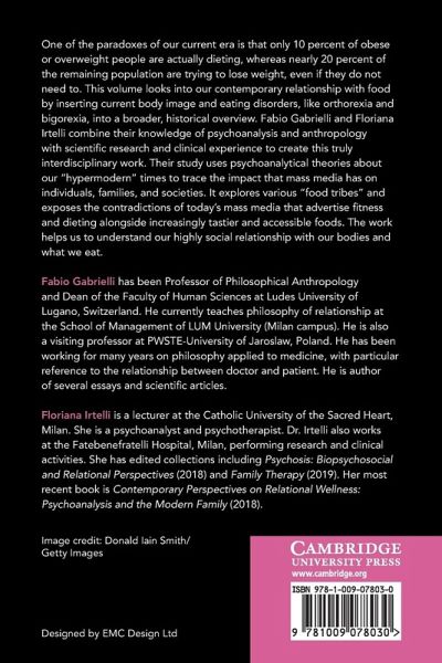 Part I. Contemporary Perspectives in Anthropology, Philosophy, and Psychology on the Human Body: An Introductory Overview: 1. The conception of the human body: An evolutionary study from ancient times to the hypermodern era; Part II. Brain Without Body, Body Without Brain, and Contemporary Body Image Disorders: 2. Body schema, body image, and hypermodern alterations; 3. Alexithymia and somatizations; 4. The myth of the perfect body image, body dysmorphic disorder, and bigorexia; 5. The complex relationship between the mind, the body, and the contemporary environment; Part III. A Specific Analysis: The Hypermodern Contradictory Relationship With Food: 6. Contemporary social trends regarding food: paradoxes and food tribes; 7. Orthorexia; 8. Contemporary perspectives on eating disorders; 9. Nervous bulimia and binge eating disorder: A contemporary overview; 10. Contemporary on obesity; Part IV. Which Possible Horizons? Some Final Considerations: 11. Body image, narcissims, and depression; 12. The global process of psycho-bodily development.