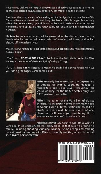 Private eye, Dick Maxim begrudgingly takes a cheating husband case from the sultry, long-legged beauty, Elizabeth Tully, the wife of a bank president. But then, three days later, he's standing on the bridge that crosses the Ala Wai Canal in Honolulu, Hawaii and watching his client's half-submerged body slowly riding the gentle waves, up and down on the small swells as the water pushes her lifeless form up against the rocky bank, her long, black hair floating across her back. He tries to remember what had happened after she slapped him, but the bourbon he had consumed before their confrontation had its way and he had slipped off into a deep sleep. Maxim knows he needs to get off the island, but little does he realize his trouble has just begun.