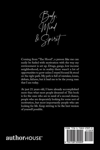Coming from "The Hood", a person like me can easily be fueled with motivation with the way my environment is set up. Drugs, gangs, low income neighborhood, so in reality there wasn't a lot of opportunities to grow unless I stayed focused & stood on the right path. My path is full of mistakes, losses, defeats, failures, but it lead me to be the young man that I am today. At just 21 years old, I have already accomplished more than what most people dreamed of. This book is for the ones who are in need of a second chance, people who are desperately looking for some sort of motivation, but most importantly people who are looking for life. Keep striving to be the best version of yourself possible.