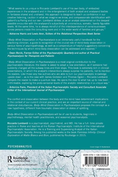 Foreword Introduction 1. Body-Mind Dissociation and Transference onto the Body 2. Visual Power, Emotions and Mental Growth : A clinical essay on some of Bion's earliest psychosomatic intuitions 3. Intersubjectivity and the Body 4. Primitive Mental States and the Body. A personal view of AB Ferrari's Concrete Original Object 5. The Body in the Analytic Session: Focusing on the Body-Mind Link 6. Body and Mind in Adolescence 7. Working with the Body-Mind Dissociation in Three Psychoanalytic Sessions 8. The Body, Feelings and the Unheard Music of the Senses 9. The Hat on top of the Volcano: Bion's O and Ferrari's Body-Mind Relationship 10. Bodily Claustrophobia and the Music: A Psychoanalytic Note on Beethoven's Fidelio 11. Conclusion: Art, Experience and Harmonization of the Body-Mind Relationship