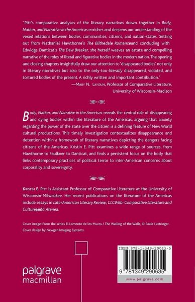 "Pitt's comparative analyses of the literary narratives drawn together in Body, Nation, and Narrative in the Americas enriches and deepens our understanding of the vexed relations between bodies, communities, citizens, and nation-states. Setting out from Nathaniel Hawthorne's The Blithedale Romance and concluding with Edwidge Danticat's The Dew Breaker, she herself weaves an astute and compelling narrative of the roles of literal and figurative bodies in the modern nation. The opening and closing chapters insightfully draw our attention to 'disappeared bodies' not only in literary narratives but also to the only-too-literally disappeared, violated, and tortured bodies of the present. A richly written and important contribution." - Mary N. Layoun, Professor of Comparative Literature, University of Wisconsin-Madison