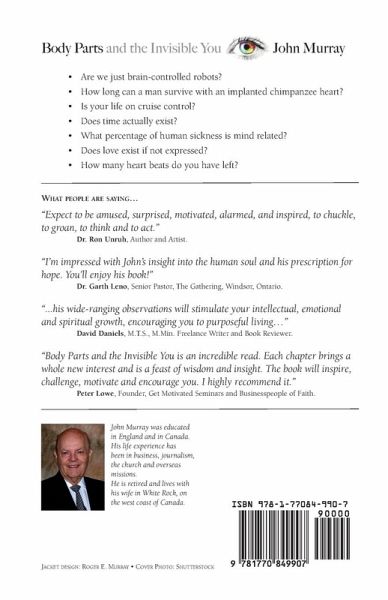 Are we just brain-controlled robots? How long can a man survive with an implanted chimpanzee heart? Is your life on cruise control? Does time actually exist? What percentage of human sickness is mind related? Does love exist if not expressed? How many heart beats do you have left? "How much do you think about the past? Do you look back at the road you have traveled? Do you ever consider what has happened to you and how you have been brought to where you are today? How has your past affected you? How has it affected others around you? Could you have reacted differently in some areas? Should you have acted differently? Should you have responded instead of reacting? Body Parts and the Invisible You is a collection of pieces, some of which were originally written for social media, but have been revised and re-written. Others are new. The subjects are as varied as life itself, covering common and not so common issues. They have been inspired by things I have read, by events that have taken place, or things people have said."