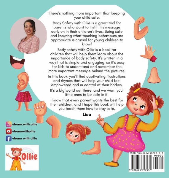 There's nothing more important than keeping your child safe. Body Safety with Ollie is a great tool for parents who want to instil this message early on in their children's lives: Being safe and knowing what touching behaviours are appropriate is crucial for young children to know! Body safety with Ollie is a book for children that will help them learn about the importance of body safety. It's written in a way that is simple and engaging, so it's easy for kids to understand and remember the more important message behind the pictures. In this book, you'll find captivating illustrations and rhymes to help your child feel empowered and in control of their bodies. It's a big world out there, and we want your little ones to be safe in it. We know that every parent wants the best for their children, and we hope this book will help you teach them how to stay safe.