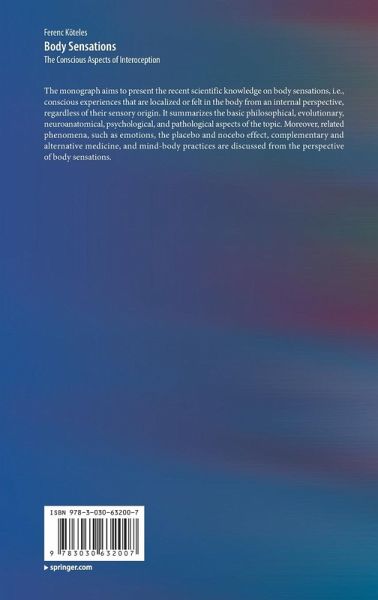 The monograph aims to present the recent scientific knowledge on body sensations, i.e., conscious experiences that are localized or felt in the body from an internal perspective, regardless of their sensory origin. It summarizes the basic philosophical, evolutionary, neuroanatomical, psychological, and pathological aspects of the topic. Moreover, related phenomena, such as emotions, the placebo and nocebo effect, complementary and alternative medicine, and mind-body practices are discussed from the perspective of body sensations.