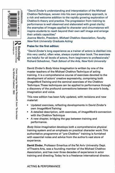 David Zinder's Body Voice Imagination is written by one of the master teachers of the Michael Chekhov technique of acting training. This book is a comprehensive course of exercises devoted to the development of actors' creative expressivity, comprising both pre-Chekhov ImageWork Training and seminal exercises of the Chekhov technique. It also details the way in which these techniques can be applied to performance through a discovery of the profound connections between the actor's body, imagination and voice. This new edition has been fully updated, with revisions and new material: Updated exercises, reflecting developments in David Zinder's own ImageWork Training An detailed description, with exercises, of ImageWork's connections to the Chekhov technique A new chapter, bridging the gap between training and performance Body Voice Imagination develops both a comprehensive physical training system and an emphasis on practical character work. This authoritative programme of 'pre-Chekhov' training is furnished with essential notes and advice from the author's vast store of professional experience.
