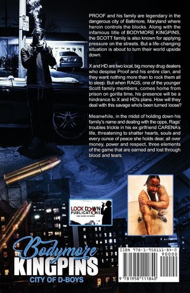 PROOF and his family are legendary in the dangerous city of Baltimore, Maryland where heroin controls the blocks. Along with the infamous title of BODYMORE KINGPINS, the SCOTT family is also known for applying pressure on the streets. But a life-changing situation is about to turn their world upside down. X and HD are two local, big money drug dealers who despise Proof and his entire clan, and they want nothing more than to rock them all to sleep. But when RAGS, one of the younger Scott family members, comes home from prison on gorilla time, his presence will be a hindrance to X and HD's plans. How will they deal with this savage who's been turned loose? Meanwhile, in the midst of holding down his family's name and dealing with the opps, Rags' troubles trickle in his exgirlfriend CARENA's life, threatening to shatter hearts, souls and every ounce of peace she holds dear, all over money, power and respect, three elements of the game that are earned and lost through blood and tears.