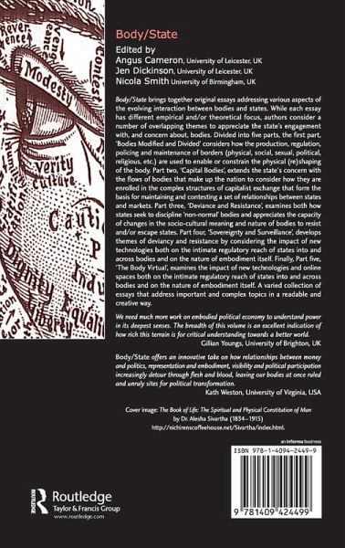 Body/State brings together original essays addressing various aspects of the evolving interaction between bodies and states. While each essay has different empirical and/or theoretical focus, authors consider a number of overlapping themes to appreciate the state's engagement with, and concern about, bodies.