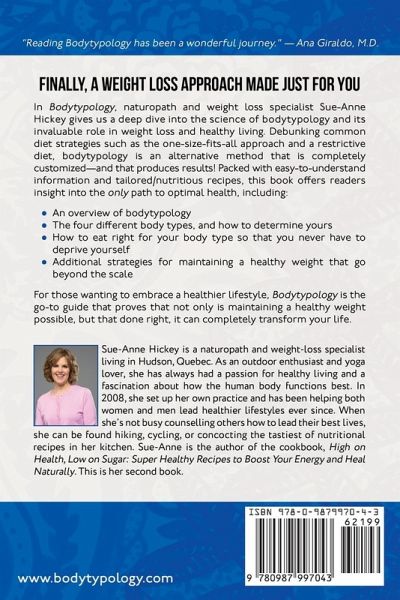 Finally, a Weight Loss Approach Made Just for You In Bodytypology, naturopath and weight loss specialist Sue-Anne Hickey gives us a deep dive into the science of bodytypology and its invaluable role in weight loss and healthy living. Debunking common diet strategies such as the one-size-fits-all approach and a restrictive diet, bodytypology is an alternative method that is completely customized-and that produces results! Packed with easy-to-understand information and tailored/nutritious recipes, this book offers readers insight into the only path to optimal health, including: An overview of bodytypology The four different body types, and how to determine yours How to eat right for your body type so that you never have to deprive yourself Additional strategies for maintaining a healthy weight that go beyond the scale For those wanting to embrace a healthier lifestyle, Bodytypology is the go-to guide that proves that not only is maintaining a healthy weight possible, but that done right, it can completely transform your life.