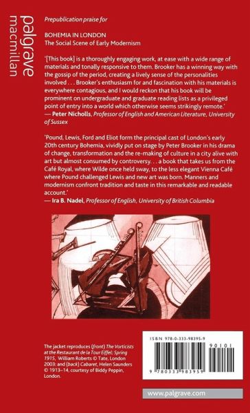 'Pound, Lewis, Ford and Eliot form the principal cast of London's early Twentieth-century Bohemia, vividly put on stage by Peter Brooker in his drama of change, transformation and the re-making of culture in a city alive with art but almost consumed by controversy. A book that takes us from the Café Royal, where Wilde once held sway, to the less elegant Vienna café where Pound challenged Lewis and new art was born. Manners and modernism confront tradition and taste in this remarkable and readable account.' - Ira B. Nadel, Professor of English, University of British Columbia