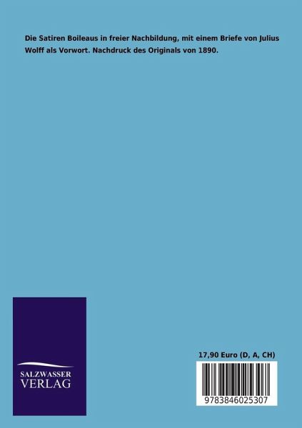 Die Satiren Boileaus in freier Nachbildung, mit einem Briefe von Julius Wolff als Vorwort. Nachdruck des Originals von 1890.