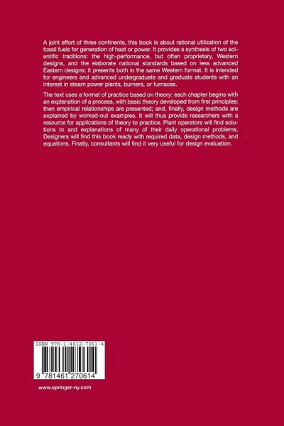 A joint effort of three continents, this book is about rational utilization of the fossil fuels for generation of heat or power. It provides a synthesis of two scientific traditions: the high-performance, but often proprietary, Western designs, and the elaborate national standards based on less advanced Eastern designs; it presents both in the same Western format. It is intended for engineers and advanced undergraduate and graduate students with an interest in steam power plants, burners, or furnaces. The text uses a format of practice based on theory: each chapter begins with an explanation of a process, with basic theory developed from first principles; then empirical relationships are presented and, finally, design methods are explained by worked out examples. It will thus provide researchers with a resource for applications of theory to practice. Plant operators will find solutions to and explanations of many of their daily operational problems. Designers will find this book ready with required data, design methods and equations. Finally, consultants will find it very useful for design evaluation.