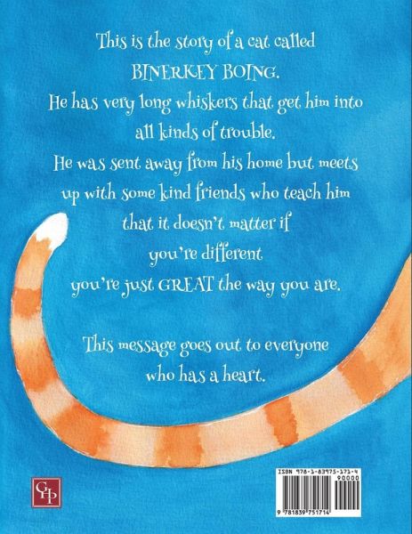 Binerkey Boing is a cat with exceptionally long whiskers that cause him to get into all kinds of trouble. He is sent away from home and on his travels meets a tapir with a strange nose who teaches Binerkey to be proud of who he is. He also meets a lobster who can't swim, a stoat and a cat with no tail. They all go to the circus to find work but Binerkey is captured by an evil ringmaster. A tender story to remind everyone that it's alright if you're different, you're just great the way you are.