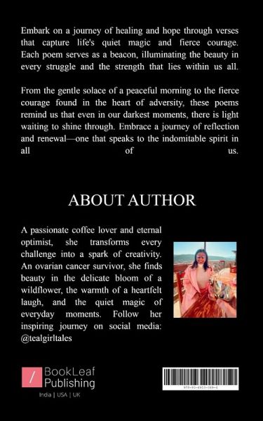 Discover a soulful journey of resilience and hope in this captivating collection of poems. Rachael Pereira Dias-survivor, creative director, and coffee lover-invites you to savor life's small victories and quiet magic. Blending heartfelt emotion with playful wit, each verse celebrates the beauty found in every challenge and every sunrise. Perfect for anyone seeking comfort, courage, and a reminder that hope is always brewing.