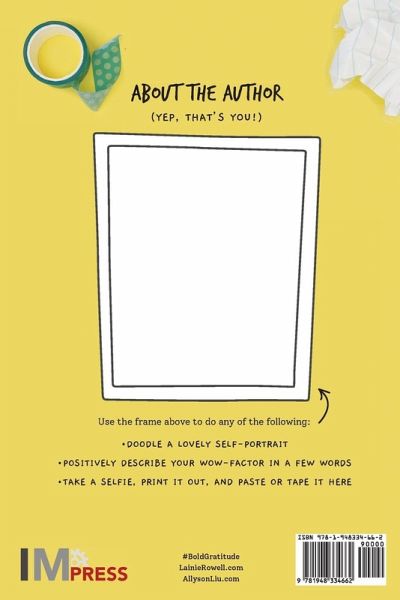 It's time to make your mark and let your bold gratitude shine! Whether you are 10 or 110, we all have unique preferences, and a one-size-fits-all approach just doesn't cut it with a gratitude journal (or anything else, for that matter). With choices galore, Bold Gratitude serves up a buffet of options including: Fill-in-the-blanks for a dash of inspiration Engaging activities to let your imagination run wild Motivating quotes to uplift your spirits Thought-provoking prompts that make you go, "Hmm..." Space for reflections and setting intentions Lean into the freedom to express yourself, ignite your gratitude, and embark on a game-changing journey. This journal, your journal, is filled with choices galore to: Flood your brain with happiness chemicals Take your relationships to the next level Make the world a legit better place Bring it all to life with the gratitude journal that is designed for you and by you!