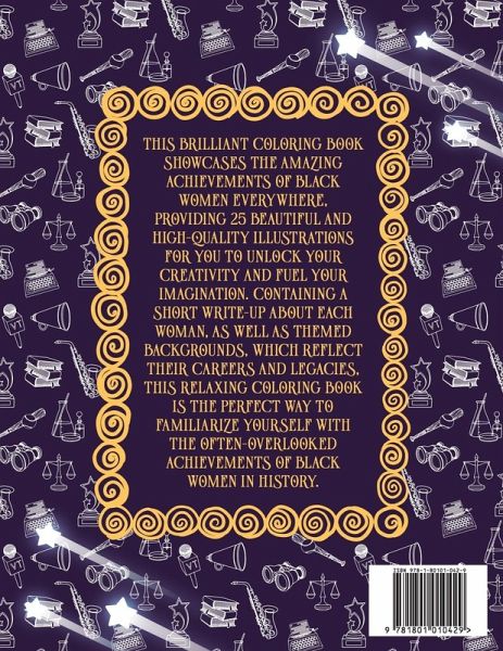 Celebrate the world's most famous black women with this unique and wonderful coloring book. Do you want to learn more about incredible black women throughout history? Are you searching for a stunning coloring book with one-of-a-kind portraits for you to color? Then this book is for you! This brilliant coloring book showcases the amazing achievements of black women everywhere, providing 25 beautiful and high-quality illustrations for you to unlock your creativity and fuel your imagination. Containing a short write-up about each woman, as well as themed backgrounds, which reflect their careers and legacies, this relaxing coloring book is the perfect way to familiarize yourself with the often-overlooked achievements of black women in history.. Including renowned sports stars, music icons, nurses, political figures, activists, actresses, and even women in the military, (book name) is great for relaxation, as a teaching aid, and even as a way to celebrate Black history month. Book details: Features 25 Gorgeous, Unique Illustrations of Famous Black Women High-Quality Paper Which is Suitable For All Pen, Pencil and Marker Types Makes a Wonderful Teaching Aid To Familiarize Yourself With the Achievements of Black Women Brilliant for Adults and Children Alike, Including Schools and Daycares Helps You Practice Relaxation, Relieve Stress, and Experience the Benefits of Mindfulness And Much More! Don't let the legacies of these remarkable women go forgotten. Now you can unleash your inner artist as you discover every new portrait!