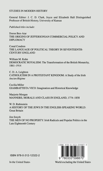 In turn, Tory minister, Jacobite renegade, English philosopher and anti-minister, Bolingbroke has elicited mixed reactions from his compatriots, both contempories and historians. Bernard Cottret discusses here his political writings in the context of contemporary thought in England and France. His analyses of 'A' Dissertation upon Parties' and 'The Idea of a Patriot King' are supported by a full mid-eighteenth-century political thought.