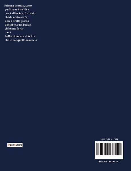 Primma de tûtto, tanto pe dâvene ûnn'idëa coscì all'incirca, ûn canto chì da nostra rivëa; ûnn-a brûtta giornâ d'ottobre, c'ûn baexìn chi mette futta; o mâ bollezzûmme, e di öchin che in sce quello remescio